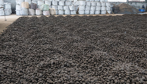 按照客戶的含量指標要求,把所需要的原材料進行人工配比打樣,化驗合格后大規模備料,而后由全自動上料機配料,通過傳送帶到全自動壓球設備生產線按照客戶要求的粒度加工生產,經過全自動烘干機(或者經過晾曬)成型,而后裝包等待銷售。